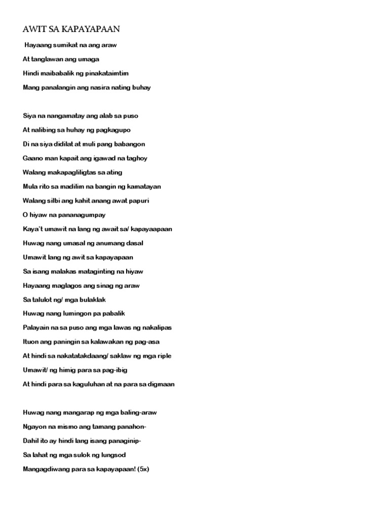 Awit Sa Kapayapaan Song Of Peace Pdf