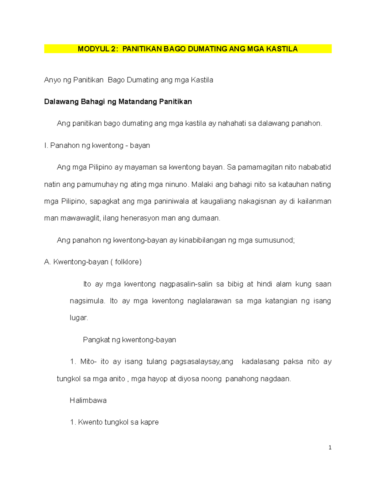 Fil 2 Modyul 2 Bago Dumating Ang Mga Kastila Modyul 2 Panitikan Bago Dumating Ang Mga Kastila Studocu