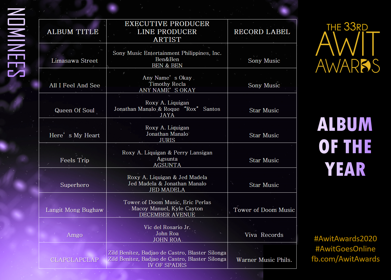 Awit Awards On Twitter 33rdawitawards Album Of The Year Nominees Https T Co Wneskwzqj5 Twitter