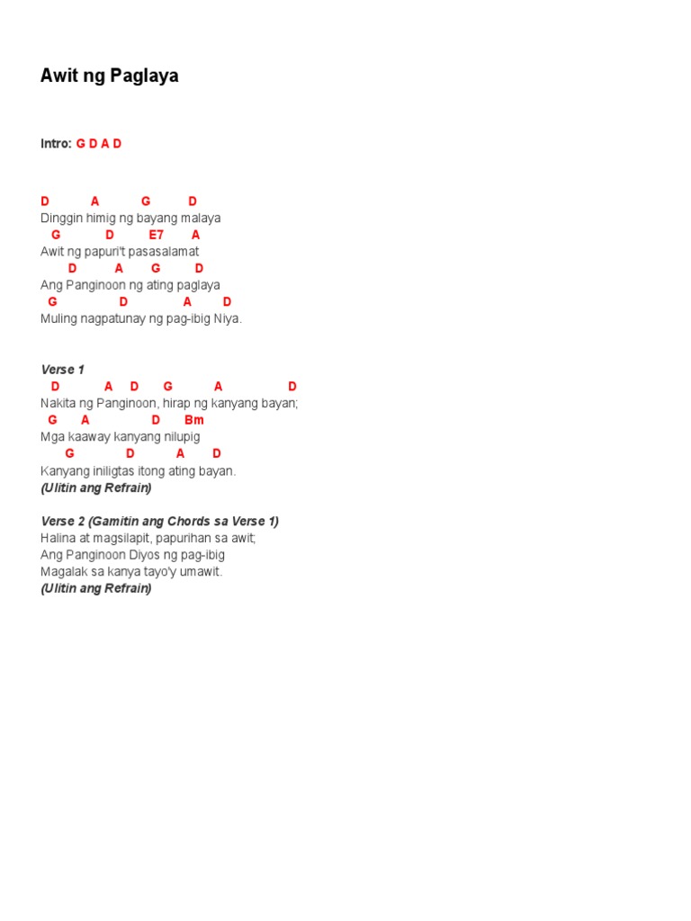 C F Ang aming bayay pinupuri ka C F Itinataas dinadakila Am G B F Ang aming puso ay iisang Am G. Free printable and easy chords for song by Victory Worship - Awit Ng Bayan. Chords ratings diagrams and lyrics.