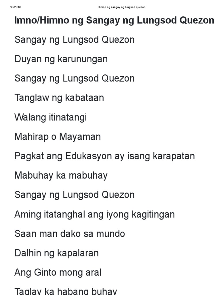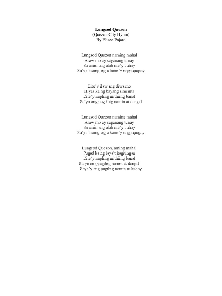 Himno Ng Sangay Ng Lungsod Quezon Pdf Pdf