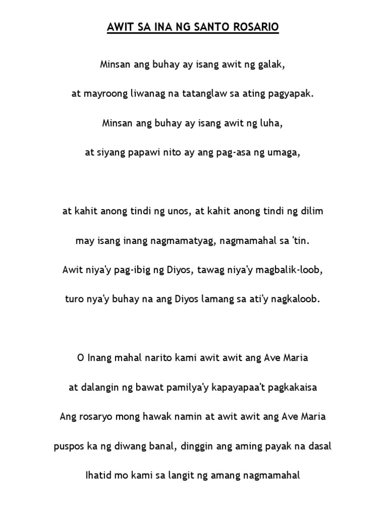 Choose one of the browsed Ang Awit Ng Wika By Cloe lyrics get the lyrics and watch the video. The song speaks of our life in terms of living the mysteries of the rosary. Sa anak mong si Jesus puso namin ay ihahandog.