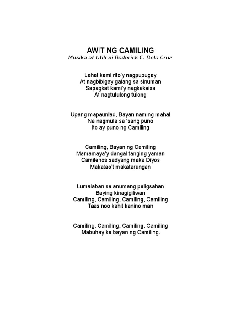 Ang bayan na kaniyang pinili sa ganang kaniyang sariling. There are 60 lyrics related to Kanta Tungkol Sa Pag Unlad Sa Bayan Lyrics. Halika na Neneng at tayoy magsimba At iyong isuot ang baro mot saya.